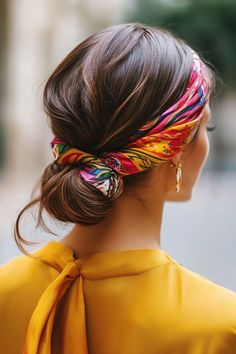 Pour maîtriser ses cheveux sans faire strict, on peut aussi faire un chignon et l’enrouler tout autour et faire un nœud. Effet chic décontracté garanti.