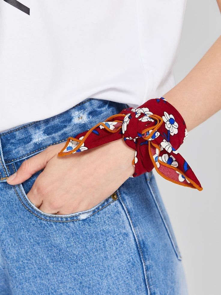 Enroulé en un ou deux tours autour du cou, noué sur le côté, il colorera une tenue classique. Et chiquisera une tenue simple telle qu’un T-shirt blanc accompagné d’un jean et d’une paire de chaussures plates ou à talon.
